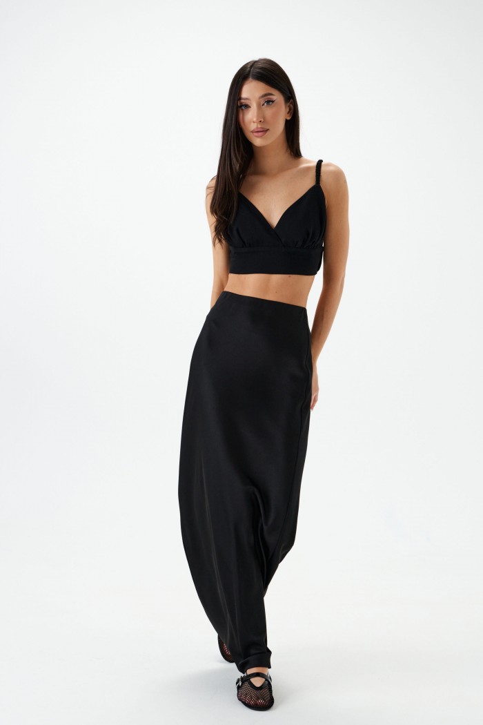 Топ. Выполнен из плотной мягкой текстильной ткани. Фигурный вырез горловины. По переду под лифом стабильная вставка. По спинке резинка со сборкой. Бретели с резинками. Застёжки нет.