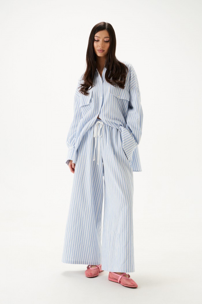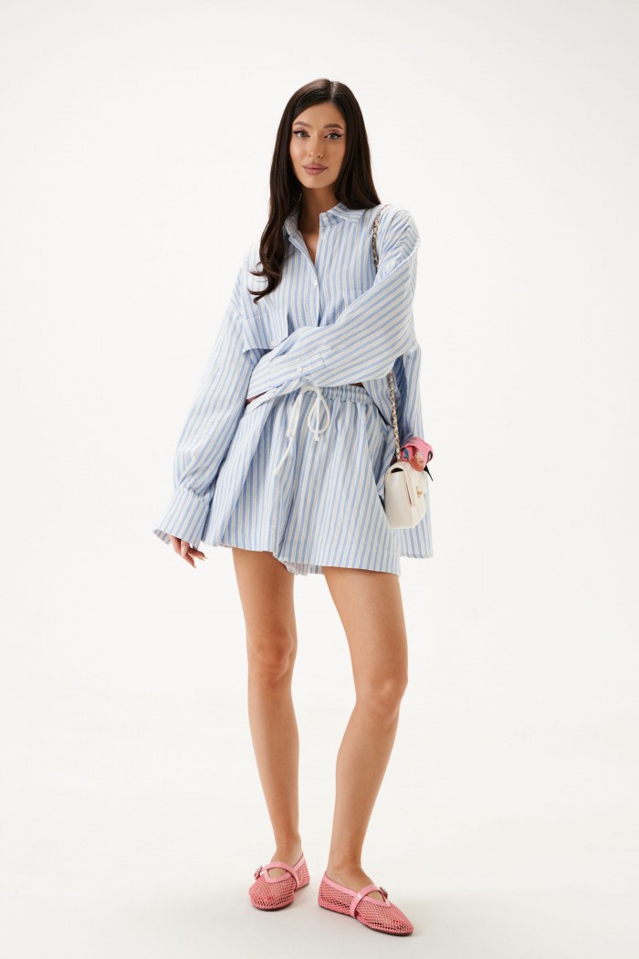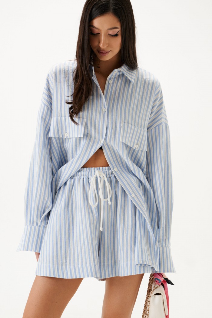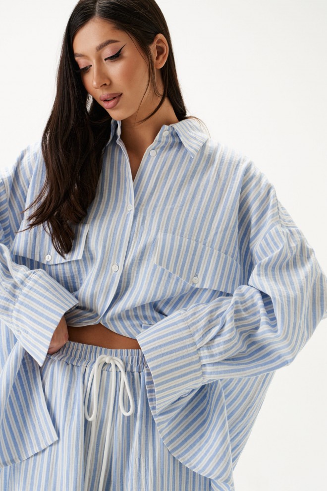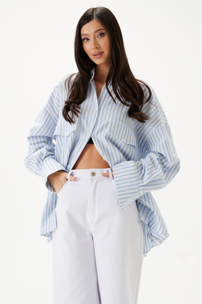 Рубашка прямого свободного кроя. Выполнена из хлопкового полотна.