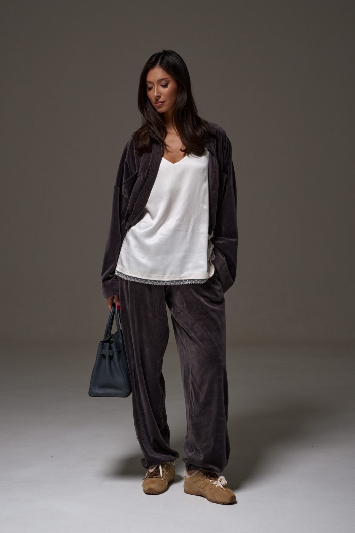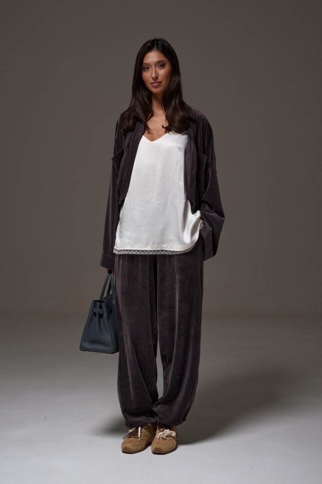 Блузон в крое трапеция, выполнен из струящейся ткани молочного цвета. Характеристика: крой трапеция - расширяется к низу, широкие бретели, спереди v-образный вырез, по спинке овальная горловины, спинка изделия чуть удлиненна, по низу изделия белое кружево, хлопковая подклада в виде топа на резинке. Длина изделия по центру спинки 63см ( с учетом кружева).