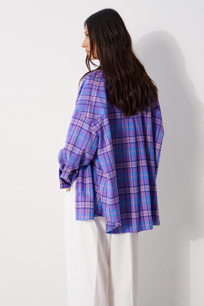 Рубашка прямого свободного кроя, выполнена из ворсистого полотна в клетку. Характеристика: воротник отложной, застёжка центральная на пуговицы, по переду справа на уровне линии груди карман, слева - брендированная нашивка Annete, рукав спущенный свободный, с широкой манжетой на пуговице, спинка отрезная с скоалками. Длина рукава от края горловины 77 см. Длин по центру спинки от края горловины 77 см.