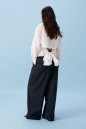 Блузка приталенного силуэта, выполнена из хлопковой белой ткани в мелкую бежевую полоску. Характеристики : Воротник отложной на стойке, рукав одношовный, втачной, по низу рукава притачная манжета. Застежка центральная на петли пуговицы. Верхняя часть спинки закрытая, длина 31см. Низ идет на завязках. Длина переда 67см, длина рукава от края горловины 77см.