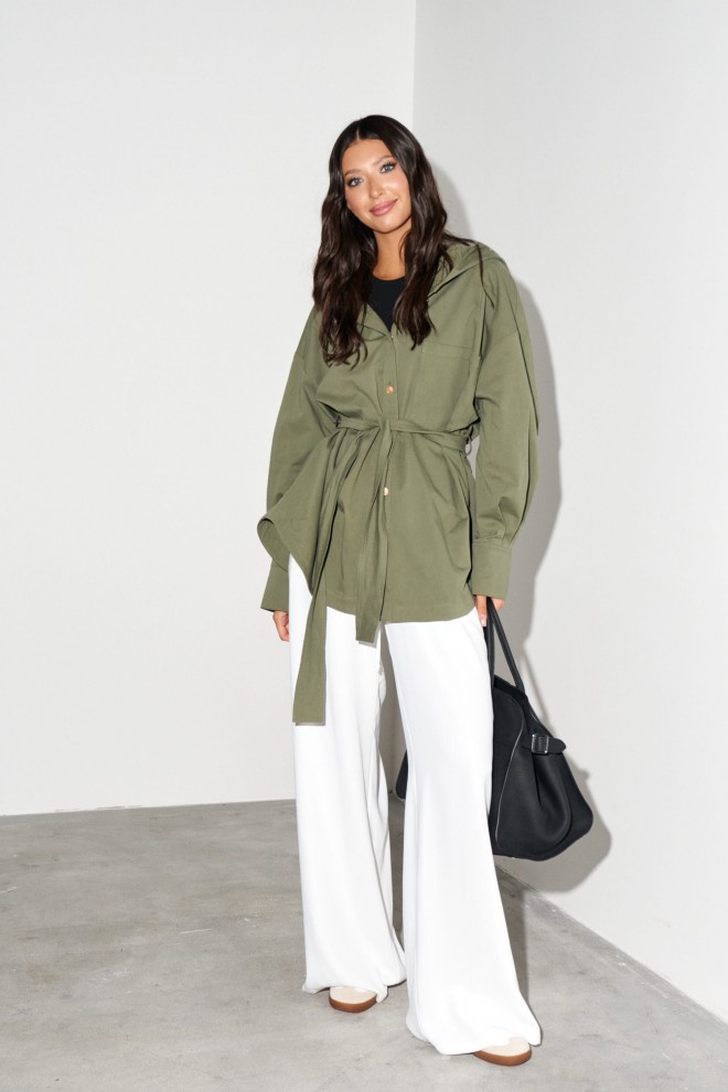 Брюки прямого свободного кроя выполнены из струящегося белого полотна. Характеристики: прямой крой, пояс на резинке со сборкой, в боковых швах карманы. Длина 112 см.