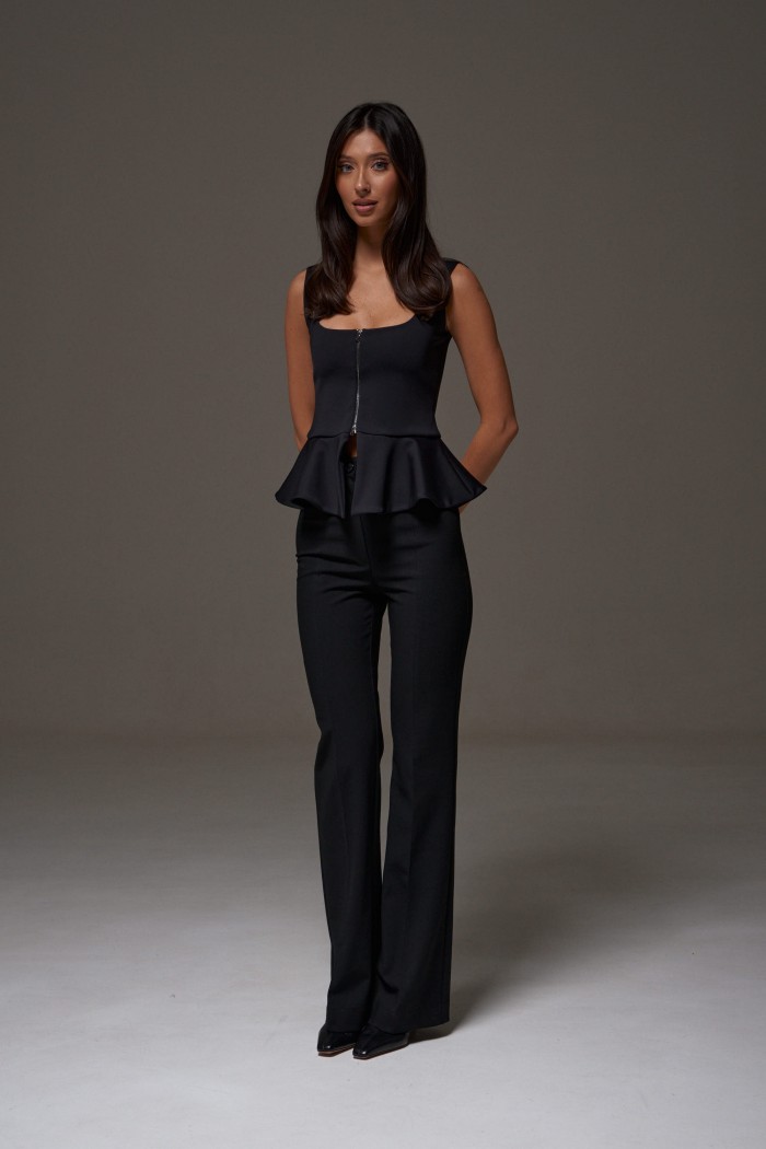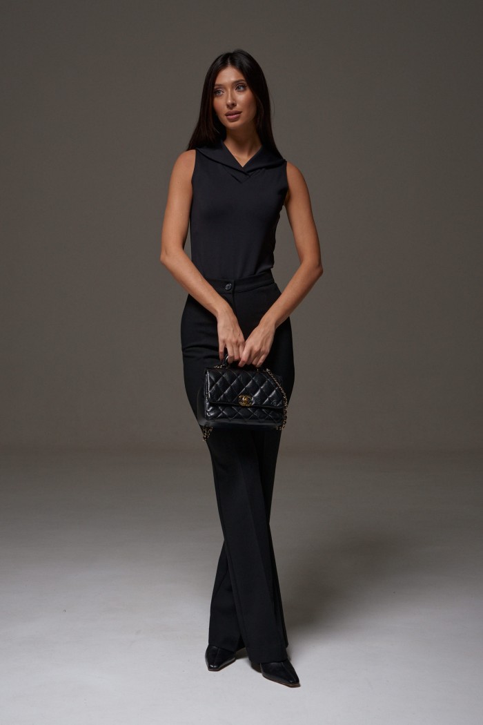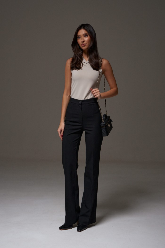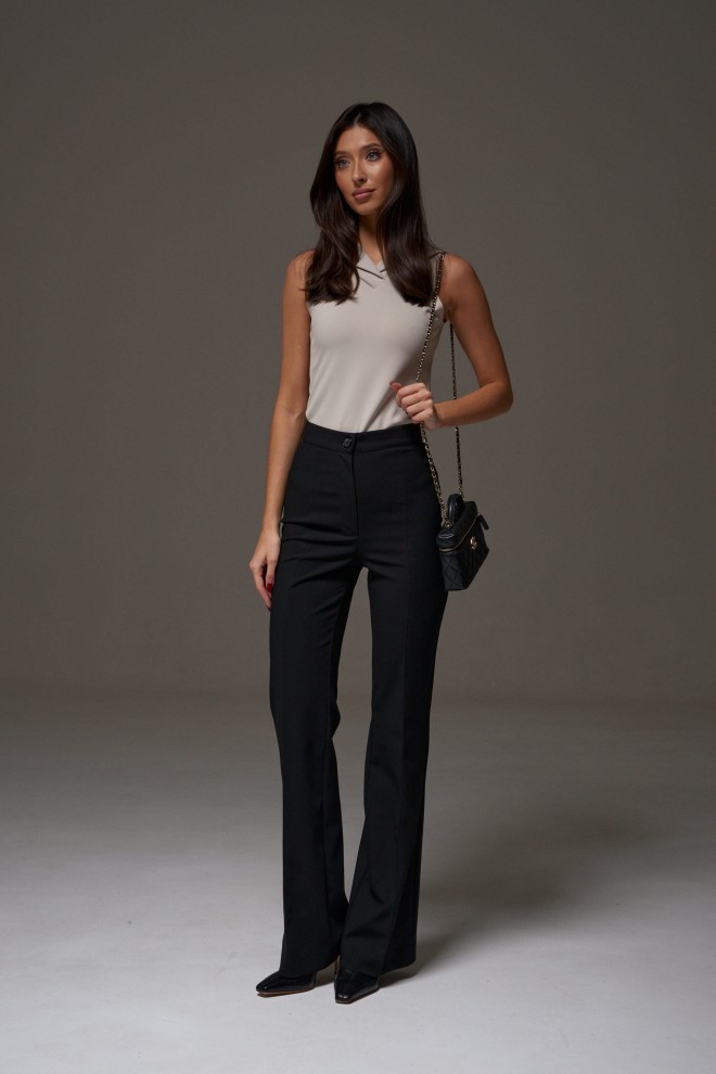 Брюки полуприлегающего силуэта с разведением к низу. Классические брюки базовый элемент гардероба. Идеально сочетаются с любым верхом. Характеристики: полуприлегающий силуэт, пояс стабильный, по переднему и заднему полотну брюк стрелки, по заднему полотну прорезные кармашки «обманки», длинна брюк по внутреннему шву 84 см.