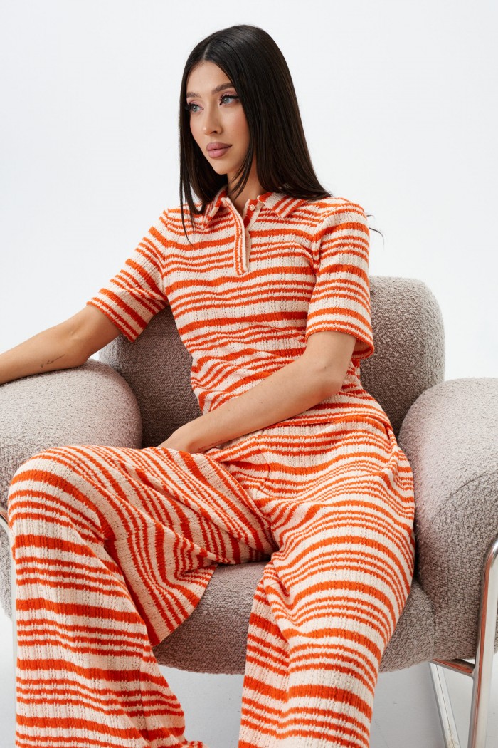 Брюки прямого свободного кроя. Выполнены из вязаного трикотажа. Характеристики: прямой крой, пояс на резинке. Длина по боковому шву 108 см