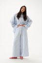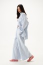 Пояс на резинке. В пояс продет шнур-завязка. По переду застёжки.