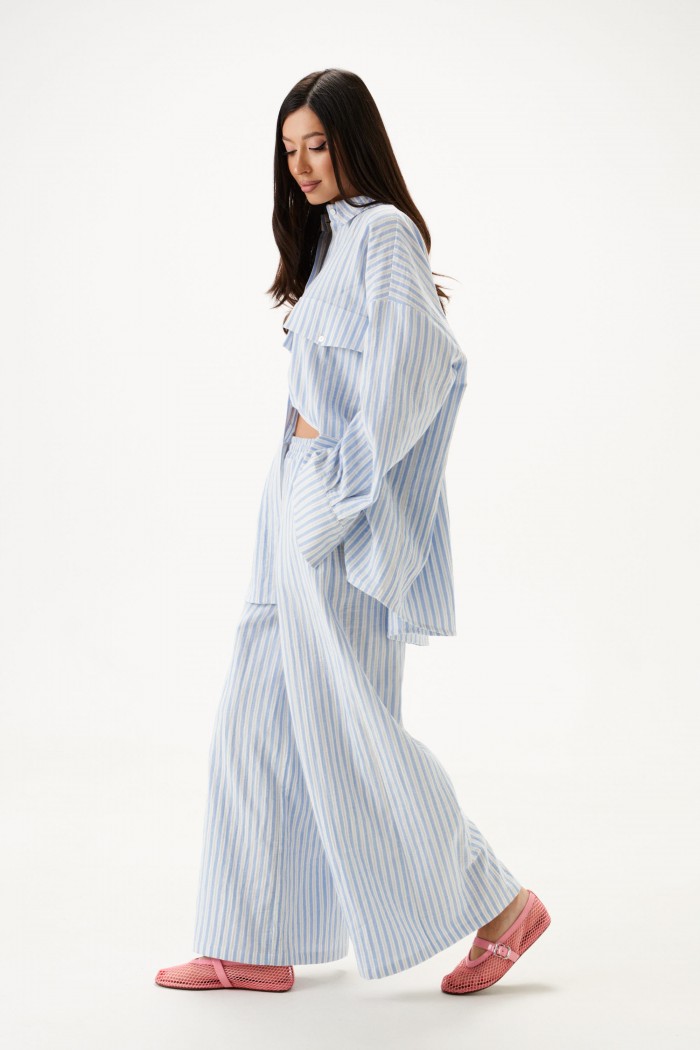 Брюки свободного кроя. Выполнены из хлопокового полотна.
