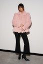 Брюки-клёш укороченные. Выполнены из костюмной ткани чёрного цвета. Пояс стабильный. Застежка центральная - молния и пуговица. По передней и задней часть стрелки (застроченные). В боковых шва имитация карманов. По задней части брюк имитация карманов в виде карманной листочки. Длина по боковому шву 96 см