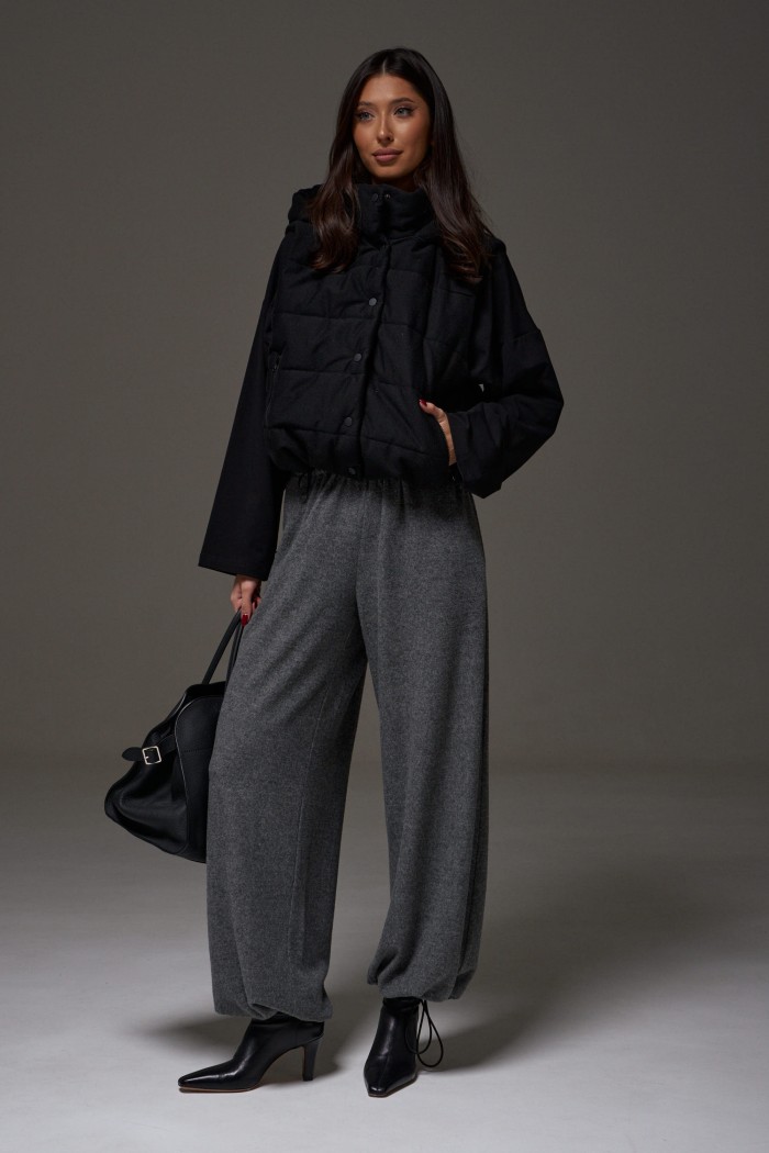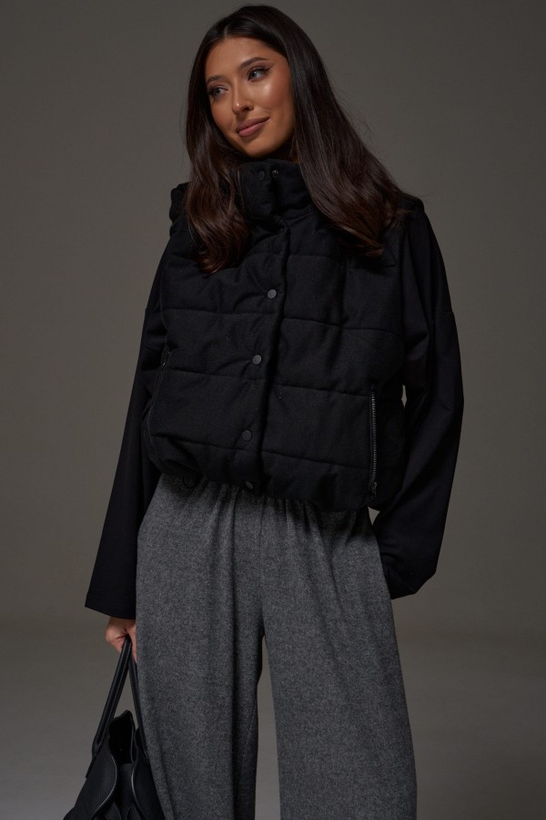 Джемпер прямого свободного кроя,выполнен из трикотажного полотна черного цвета. Характеристики: прямой крой, овальный вырез горловины, спинка цельнокроеная, по переду брендированная нашивка. Рукав длинный спущен. Длина по спинке 73 см, длина рукава от края горловины 53см.
