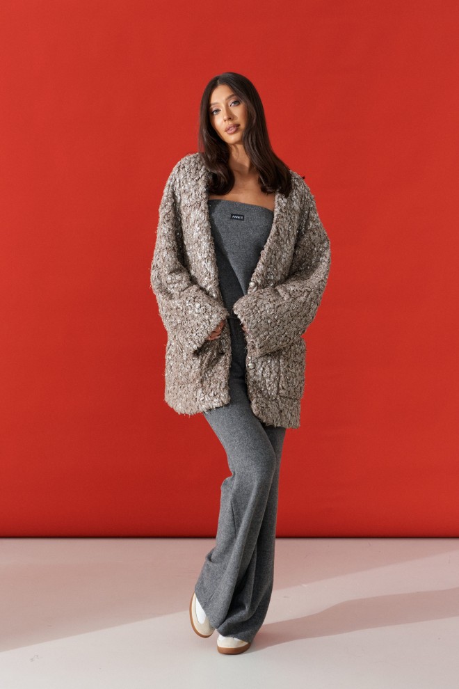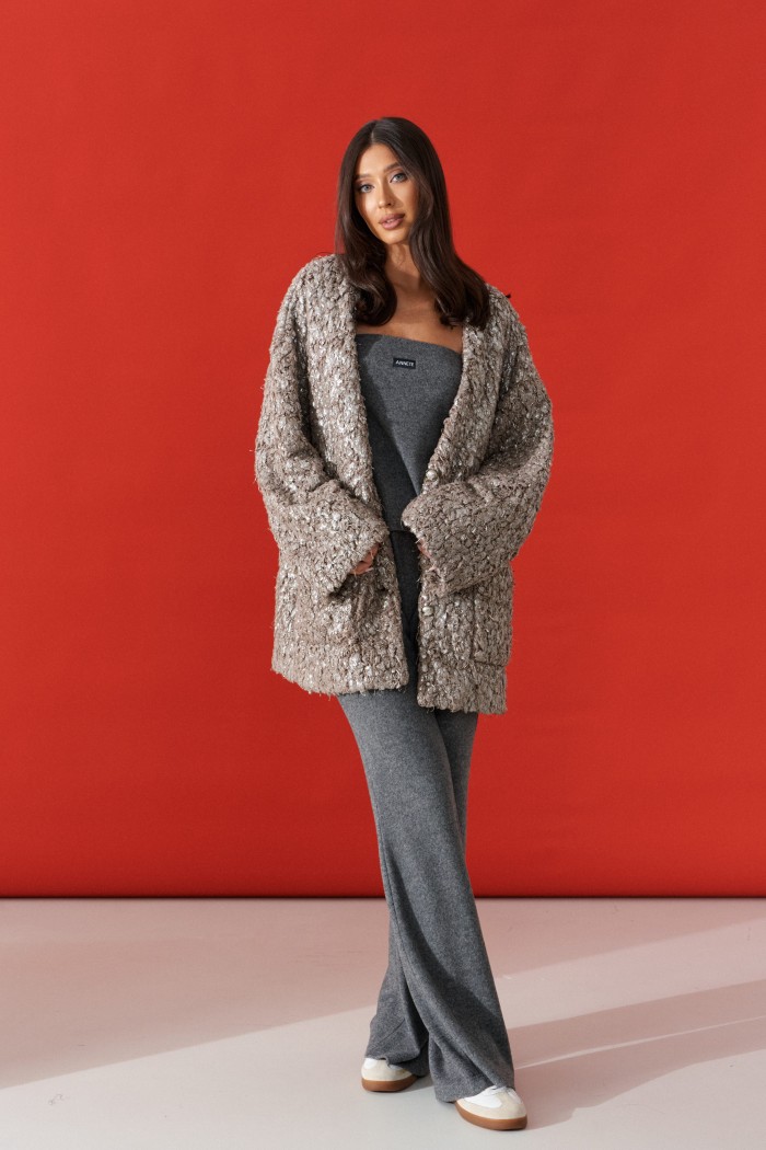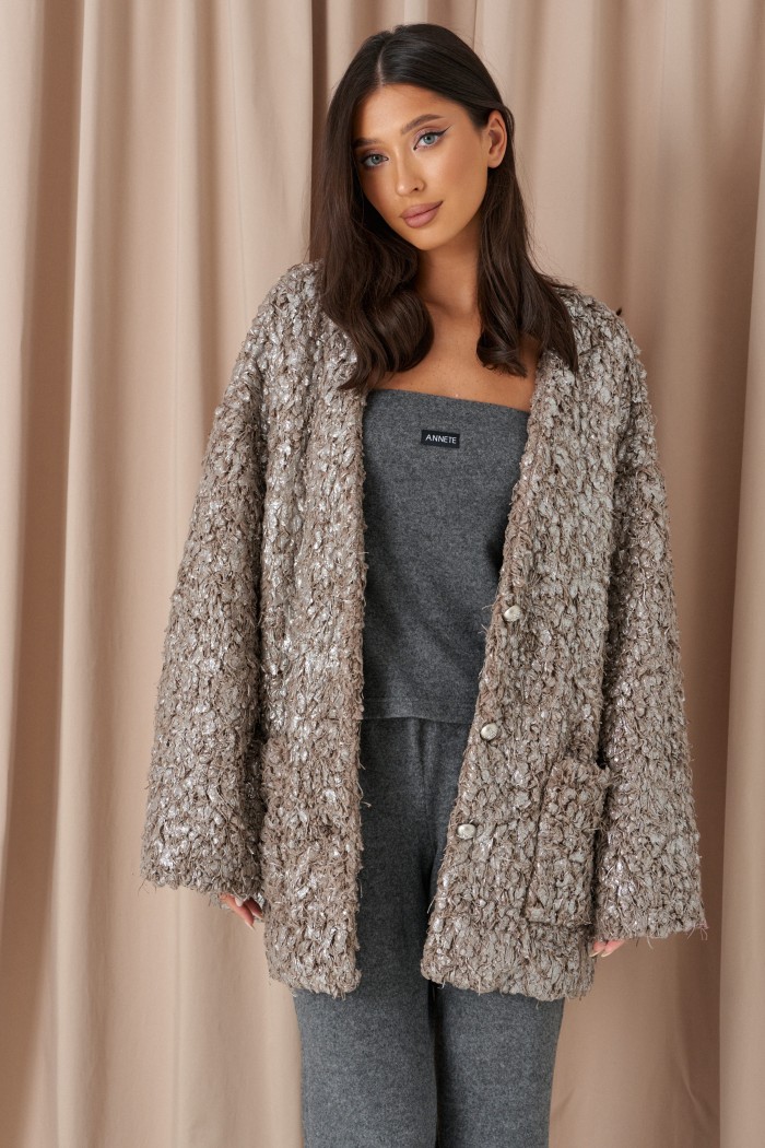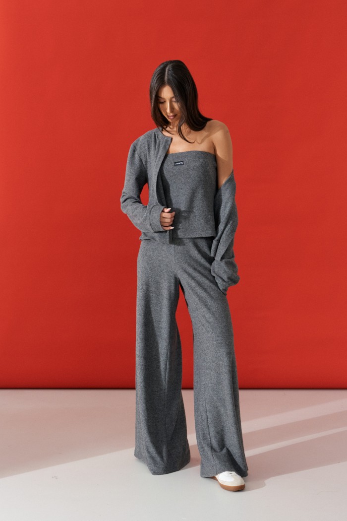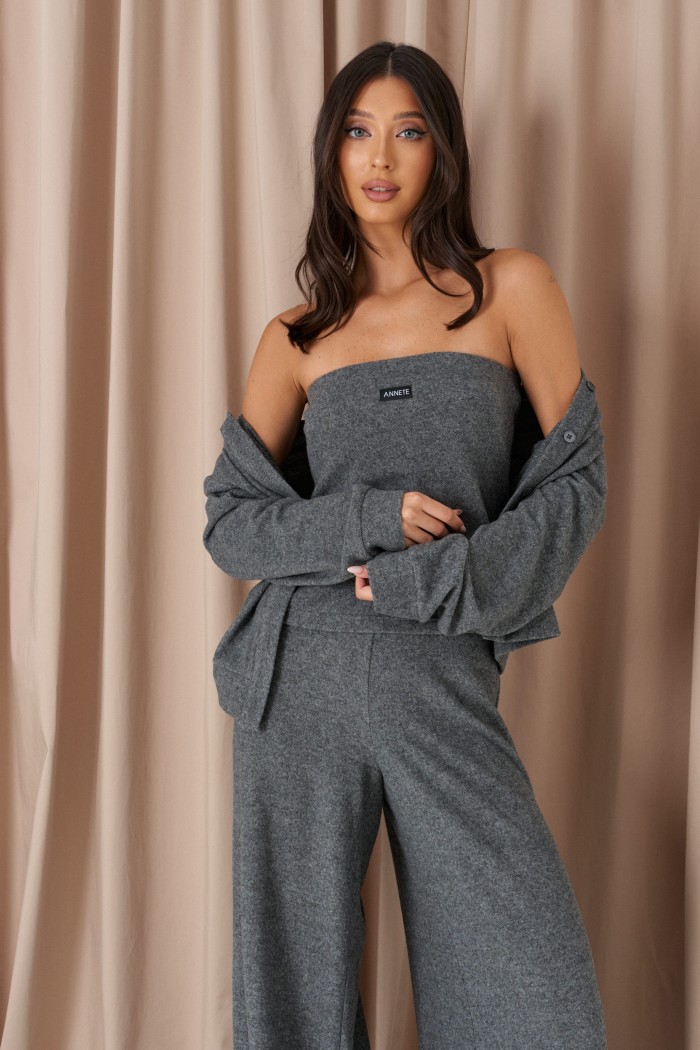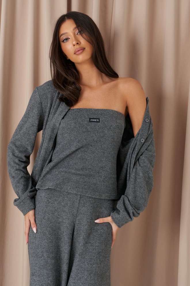 Топ прямого кроя с открытыми плечами, выполнен из трикотажного порсистого полотна серого цвета. Характеристика: прямой крой, верх изделия по передней и задней части на резинке, спереди брендированная нашивка. Длина по передней части 36см, по задней части 34см.