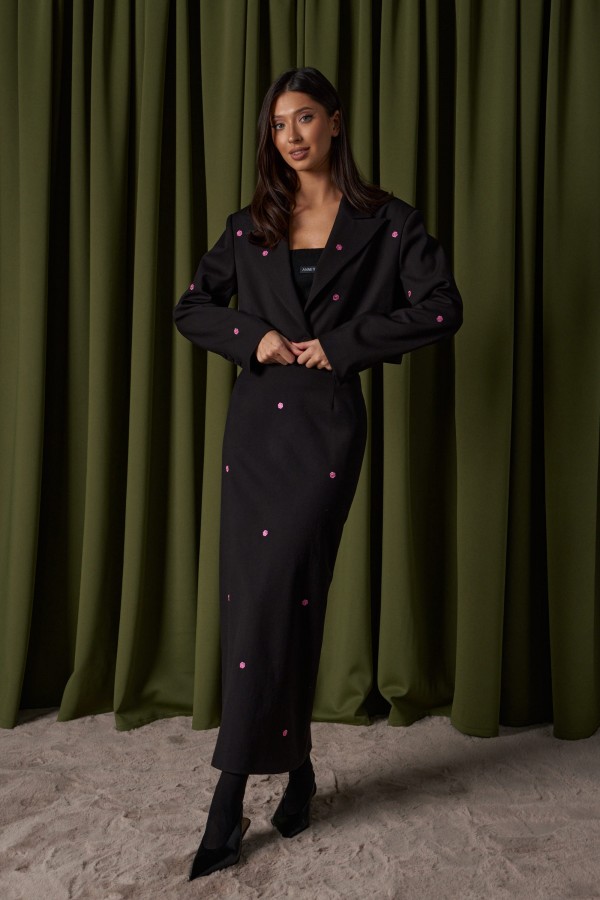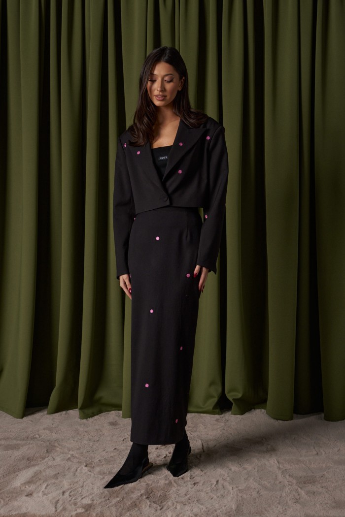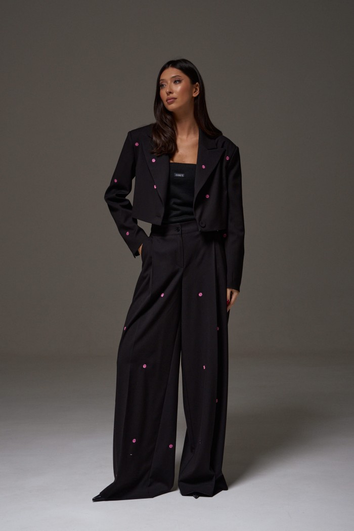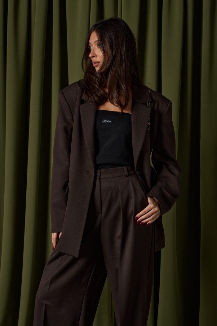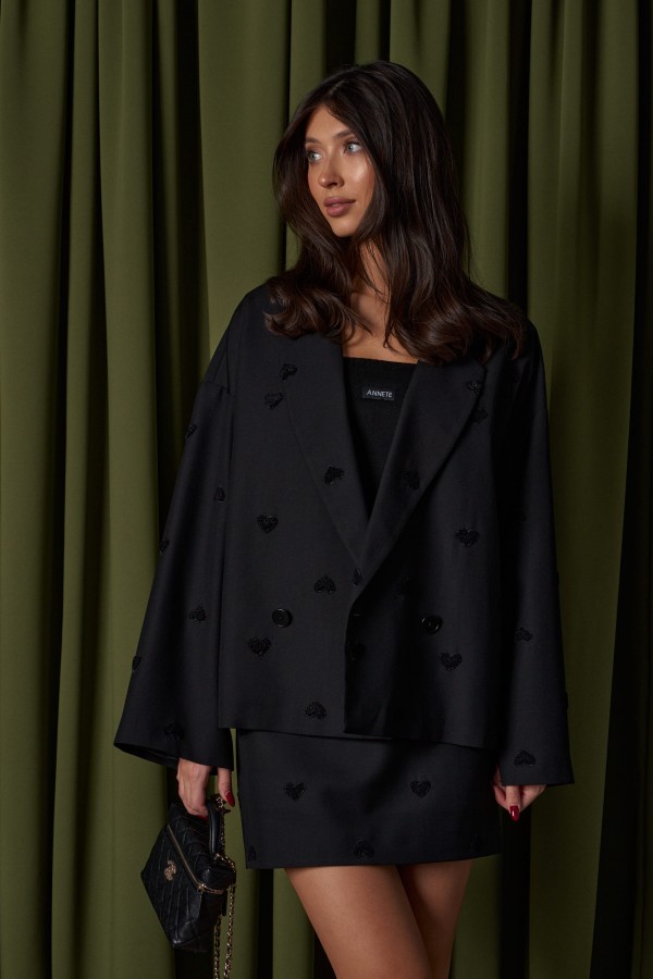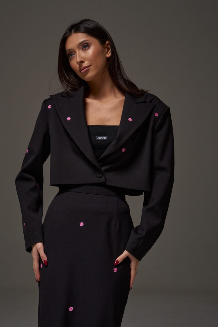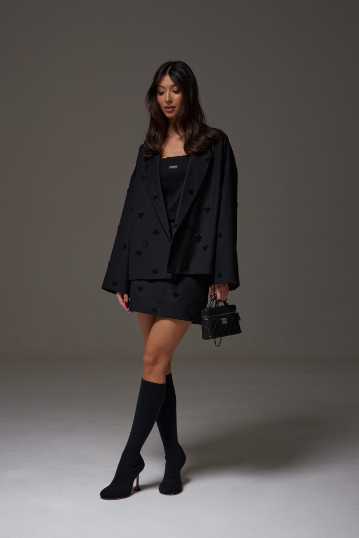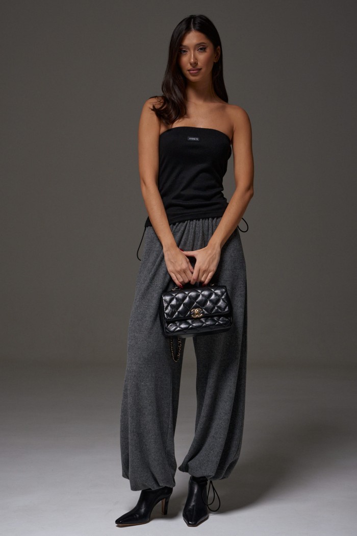 Топ прямого кроя с открытыми плечами, выполнен из трикотажного полотна черного цвета. Характеристика: прямой крой, верх изделия по передней и задней части на резинке, спереди брендированная нашивка. Длина по передней части 37 см, по задней части 34 см.