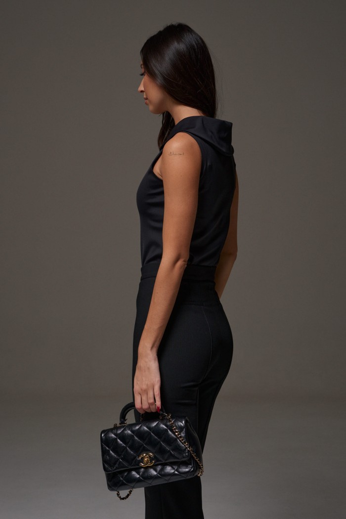 Боди прилегающего силуэта выполнен из эластичного полотна.