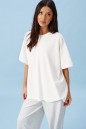 Футболка прямого свободного кроя, выполнена из трикотажного полотна белого цвета. Характеристика: прямой крой, овальная горловина выполнена из довяза, рукав вточной спущенный, край выполнен из довяза, спинка цельнокраеная, на спинке под горловиной брендированная нашивка "ANNETE". Длина по спинке 68см, длина рукава от края горловины 40см.