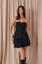 Шорты трапеция выполнена из костюмной ткани черного цвета. Харектеристики: силуэт трапеция, ткань плотная с минимальным начесом, пояс стабильный с шлевками, застежка на молнии и петле-пуговице, складки, в боковых швах карманы. Длина 39 см.