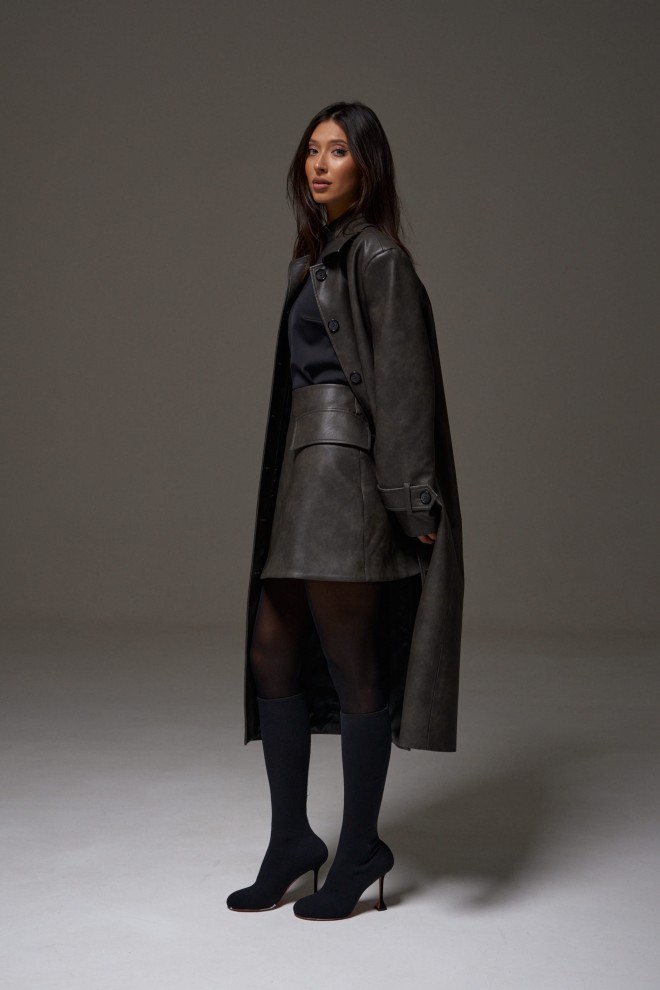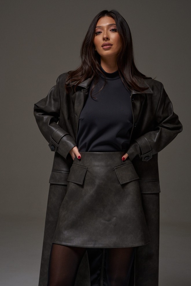 Юбка полуприлегающего силуэта, выполнена из эко-кожи.