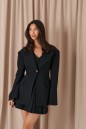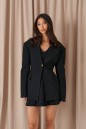 Жакет полуприталенного силуэта. Выполнен из трикотажного полотна черного цвета. Брендированная подкладка. Воротник с остроугольным лацканом. Функциональные карманы с клапаном. Рукав втачной, расклешеный. Застежка центральная на петлю пуговицу. Длина рукава 64 см. Длина спинки 72 см.