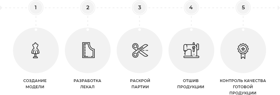 Компания располагает собственным производством полного цикла. Команда специалистов компании выполняет все задачи по выпуску модели одежды: